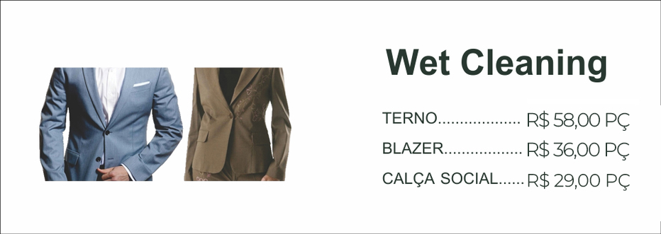 Wet-cleaning é um método seguro para limpeza de roupas à úmido, substituindo a limpeza a seco. Utiliza a água como agente de limpeza, em um processo computadorizado, munido de sensores e dosadores especiais. Limpa e hidrata a roupa, sem danificá-la, com produtos biodegradáveis que não agridem o meio ambiente.